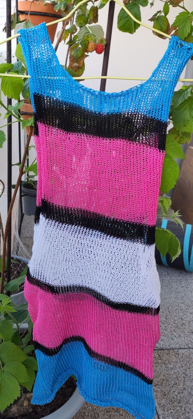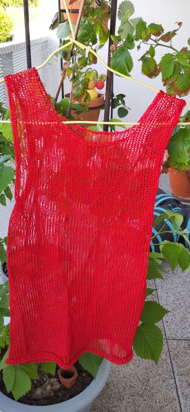La Résille est un débardeur en mailles trés aéré. Il est tricoté a l'aide de la machine a tricoter et les finitions sont faites a la main. Il est tout en coton pour un effet tout doux.